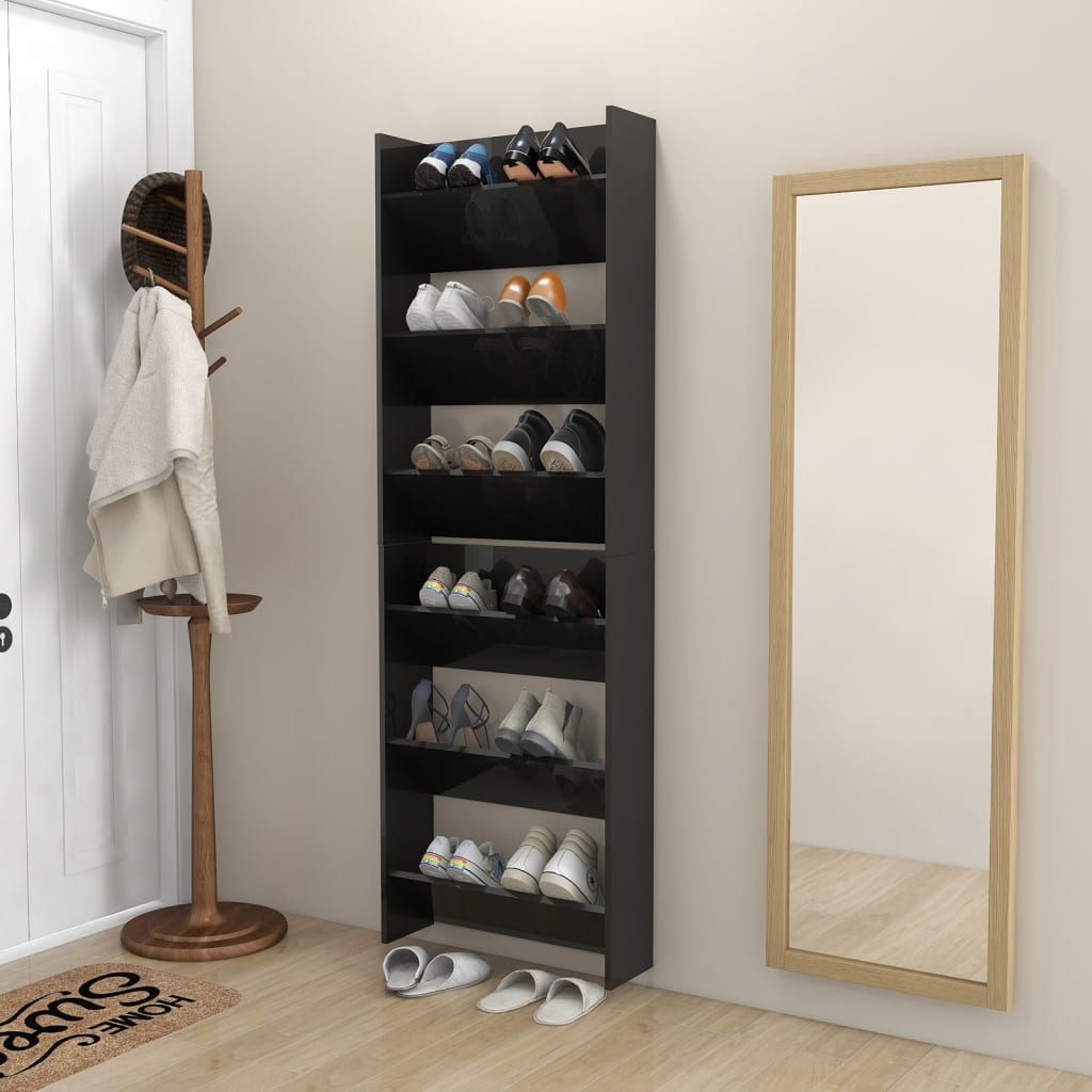 Wand-Schuhschränke 2 Stk. Hochglanz-Schwarz 60x18x90 cm