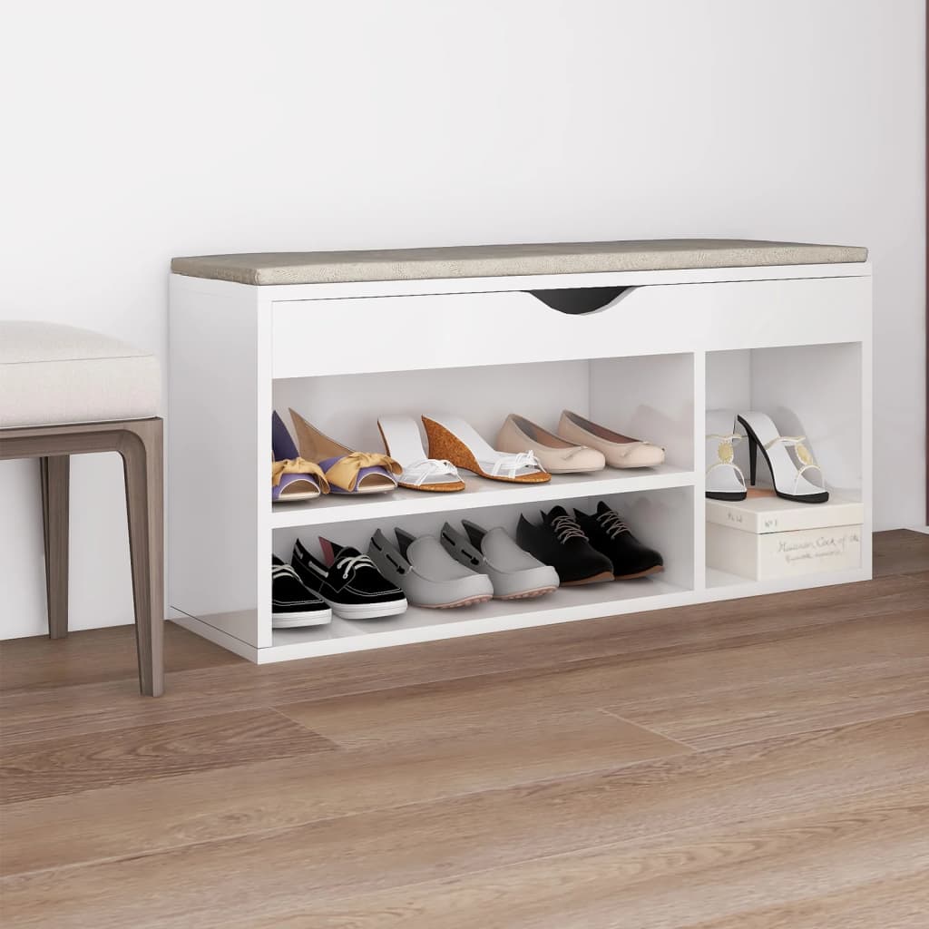Schuhbank mit Kissen Weiss 80x30x47 cm Holzwerkstoff
