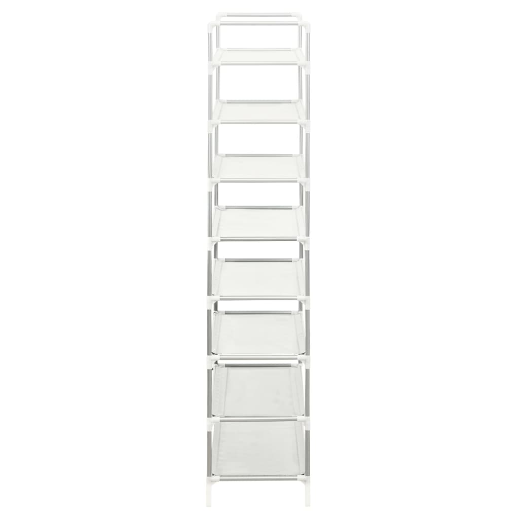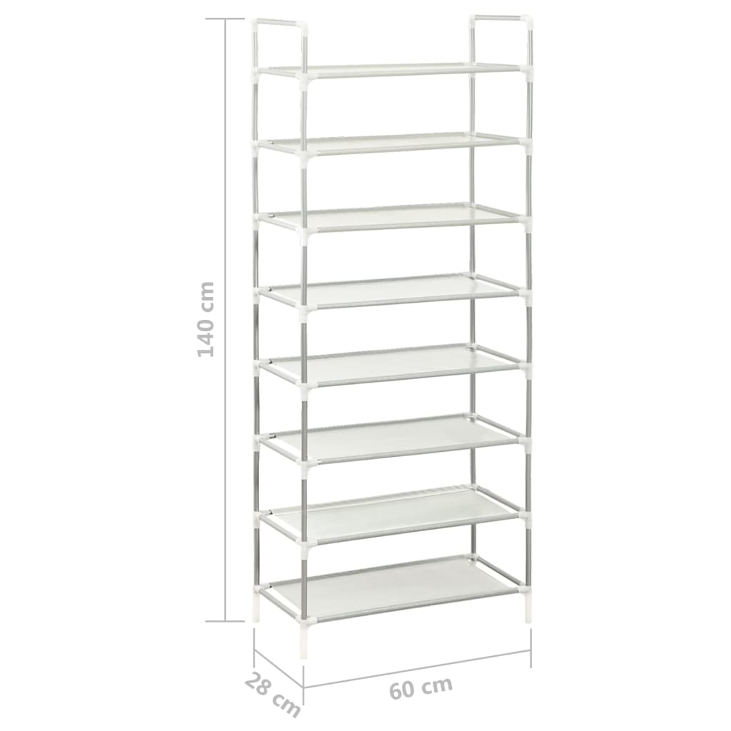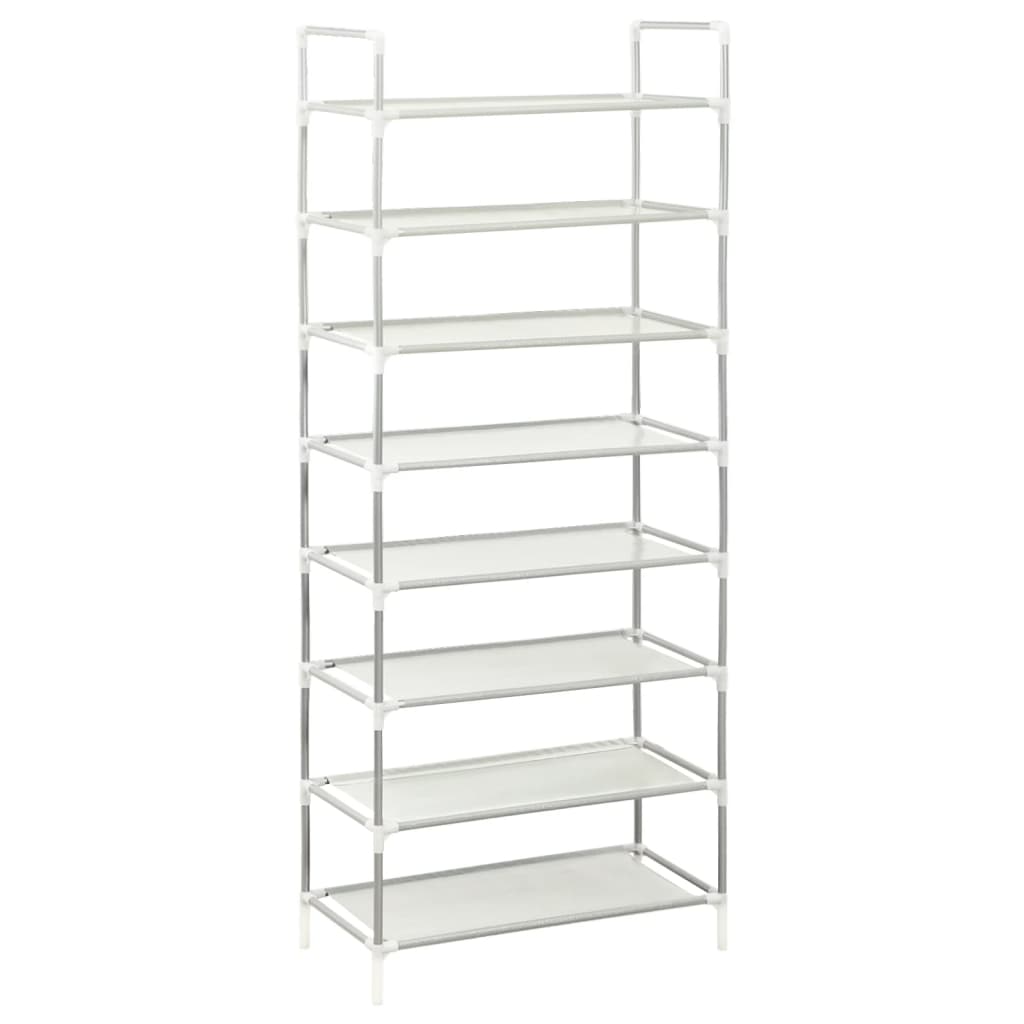 Schuhregal mit 8 Etagen Metall und Vliesstoff Silbern