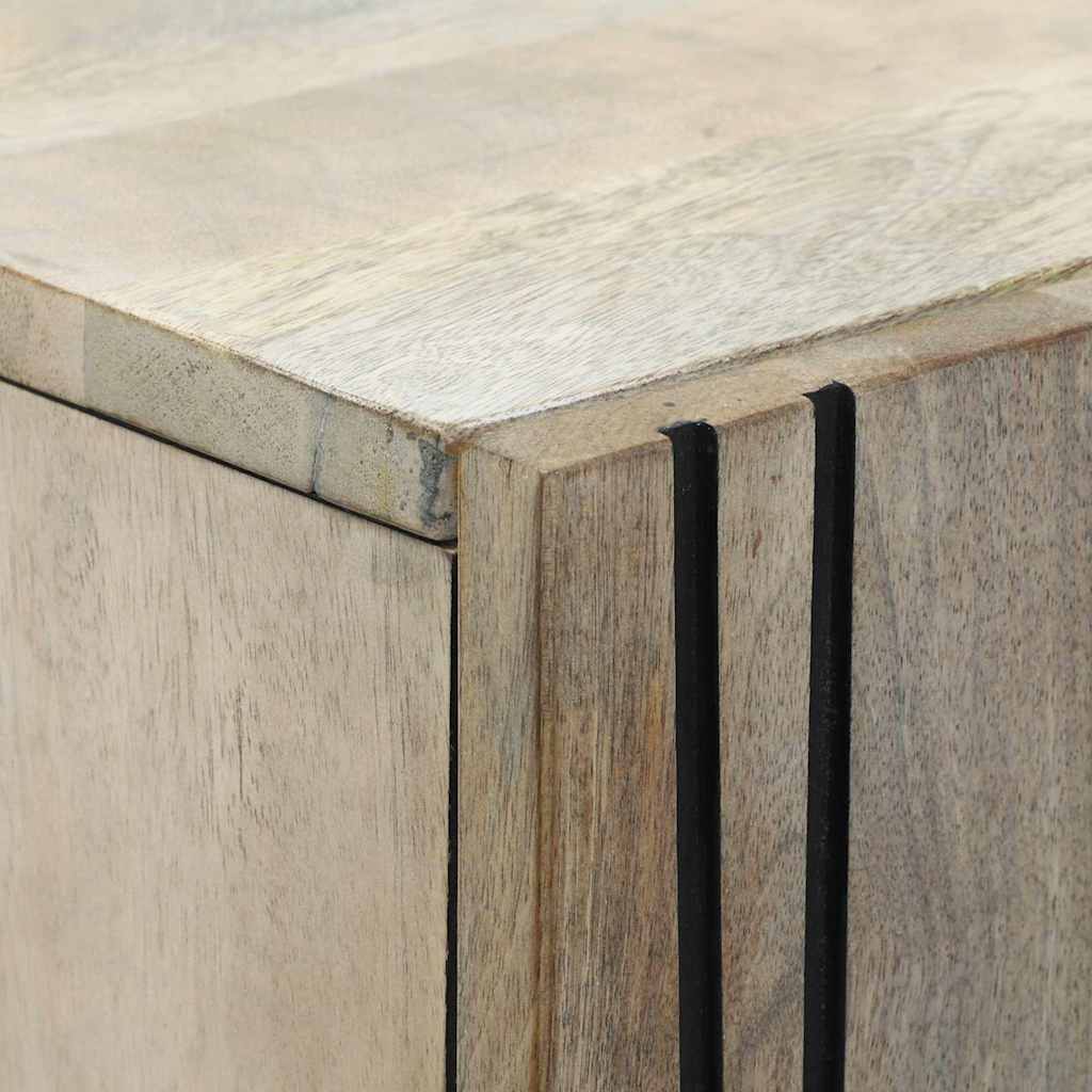 Dieser rechteckige Stauraum ist ganz auf Style und Funktionalität in deinem Wohnraum ausgelegt. Hergestellt aus massivem Mango-Holz und Holzwerkstoff ist er eine schicke Ergänzung für jedes Zuhause. Mit seiner glatten, farbbeständigen Oberfläche setzt dieser Sideboard nicht nur deine Deko in Szene, sondern bietet auch viel Stauraum für allerlei Dinge. Stell dir dieses coole Stück in deinem Esszimmer oder Wohnzimmer vor, das deine Essentials ordentlich verstaut und eine warme, einladende Atmosphäre schafft. Durch die Kombination der Materialien hat er einen eleganten Touch, der sowohl zu modernen als auch zu traditionellen Stilen passt. Top Materialien: Hergestellt aus massivem Mango-Holz und Holzwerkstoff, ist dieser Sideboard langlebig und sieht edel aus. Er hält den Test der Zeit und bringt Raffinesse in jeden Raum. Die Kombination dieser Materialien macht ihn nicht nur praktisch, sondern auch zu einem kleinen Kunstwerk, das zu verschiedenen Einrichtungsstilen passt. Praktische Lösung: Mit seinen glatten Türen und dem geräumigen Innenraum bietet dieser Sideboard eine tolle Stauraumlösung. Die vielen Fächer helfen dir, ordentlich zu bleiben, sodass dein Wohnbereich immer aufgeräumt aussieht. Dieses durchdachte Design ist ideal, um alles von Geschirr bis Deko aufzubewahren. Einfach im Handling: Der Sideboard hat Türen, die alles ordentlich verstauen. So hast du leicht Zugriff auf das, was du brauchst, und es sieht immer ordentlich aus. Sein klares Design fügt sich schön in jede Raumgestaltung ein und vermeidet das visuelle Chaos von offenen Regalen. Vielseitig einsetzbar: Perfekt für dein Wohnzimmer oder Essbereich, passt dieser große Sideboard ideal in jede Umgebung. Er bietet genügend Stauraum für jeden, der etwas Platz braucht, und hilft dir, die Dinge organisiert zu halten. Ob Geschirr oder Gesellschaftsspiele, er hat Platz für alles. Sichere Basis: Wird mit einer Wandbefestigung geliefert, um ein Umkippen zu verhindern und die Stabilität in lebhafteren Haushalten zu erhöhen. Halte den Sideboard frisch, indem du ihn einfach mit einem trockenen Tuch abwischst und aggressive Reinigungsmittel vermeidest. Das mitgelieferte Material sorgt für einen sicheren Halt, auch bei schwereren Gegenständen.