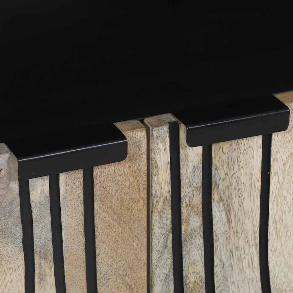 Lerne das rechteckige Sideboard kennen – es verbindet rustikalen Charme und schicke Eleganz und ist eine geniale Ergänzung für jedes Wohnzimmer oder Esszimmer. Mit viel Liebe zum Detail kombiniert es klassische und moderne Stile und zeigt ein Design, das sowohl stark als auch praktisch ist. Die zweifarbige Oberfläche und die texturierte Fläche sind ein echter Augenschmaus und geben dem Sideboard einen besonderen Touch, was es zu einem Must-Have in deiner Wohnkultur macht. Massivholz Mango: Dieses Sideboard aus massivem Mangoholz bringt eine warme und einladende Atmosphäre in jeden Raum. Es wurde wegen seiner Stärke und Langlebigkeit ausgewählt, ist zuverlässig und passt super zu jedem Wohnstil, während es rustikales Flair unterstützt. Vielseitiger Stauraum: Mit Regalen und integrierten Türen bietet dieses Sideboard viele Optionen zum Verstauen, perfekt für alles, vom Geschirr bis zu Deko, und hält deinen Raum ordentlich. Texturierte Oberfläche: Die texturierte Oberfläche hebt den rustikalen Stil des Sideboards hervor und bringt visuelle Tiefe. Sein wellenförmiges Muster zieht die Blicke an und macht es zum Highlight in jedem Raum. Robuste Konstruktion: Hergestellt aus massivem Mangoholz und einem zusätzlichen Holzwerkstoff, ist dieses Sideboard für die Ewigkeit gedacht. Es hält viel aus und ist perfekt für den täglichen Gebrauch. Mühelose Pflege: Super einfach zusammenzubauen, stabil und pflegeleicht. Mit einem schnellen Abstauben mit einem weichen, trockenen Tuch sieht es immer schick aus.