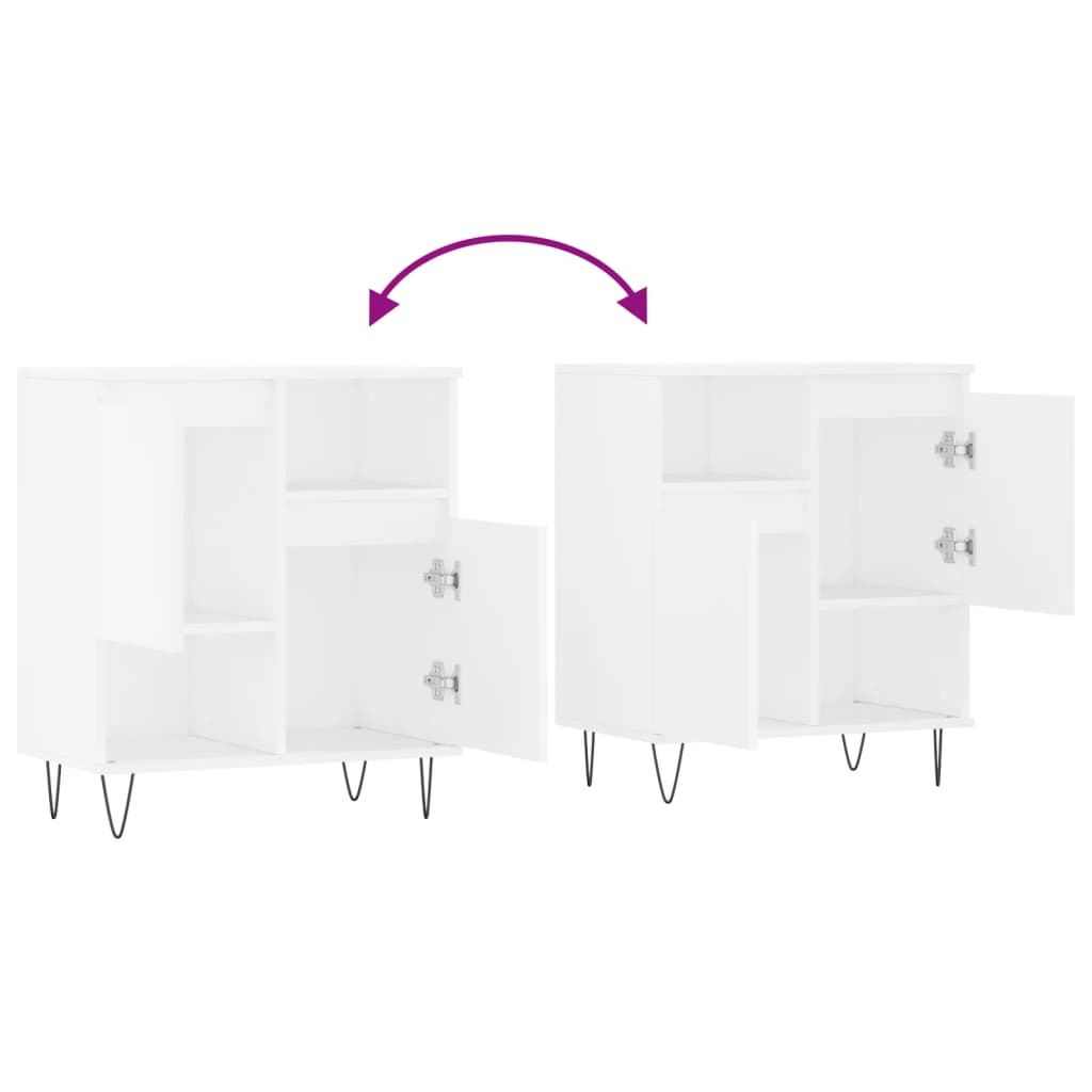 Dieses trendige Sideboard im zeitlosen Look ist eine hervorragende Ergänzung für dein Zuhause. Langlebiges Material: Der Holzwerkstoff ist von außergewöhnlicher Qualität, hat eine glatte Oberfläche und zeichnet sich außerdem durch Festigkeit, Stabilität und Feuchtigkeitsbeständigkeit aus. Der Schrank aus Holzwerkstoff lässt sich leicht mit einem feuchten Tuch reinigen.Reichlich Stauraum: Die Kommode bietet reichlich Stauraum, um die verschiedenen Dinge des täglichen Bedarfs gut organisiert und in Reichweite aufzubewahren.Präsentation: Die Oberseite des Schranks eignet sich perfekt zum Ausstellen von Dekoartikeln, Bilderrahmen und Topfpflanzen.Beine aus Eisen: Die Eisenbeine des Beistellschranks sorgen für Robustheit und Stabilität. Achtung:Um ein Umkippen zu vermeiden, sollte dieses Produkt mit der mitgelieferten Wandhalterung gesichert werden.