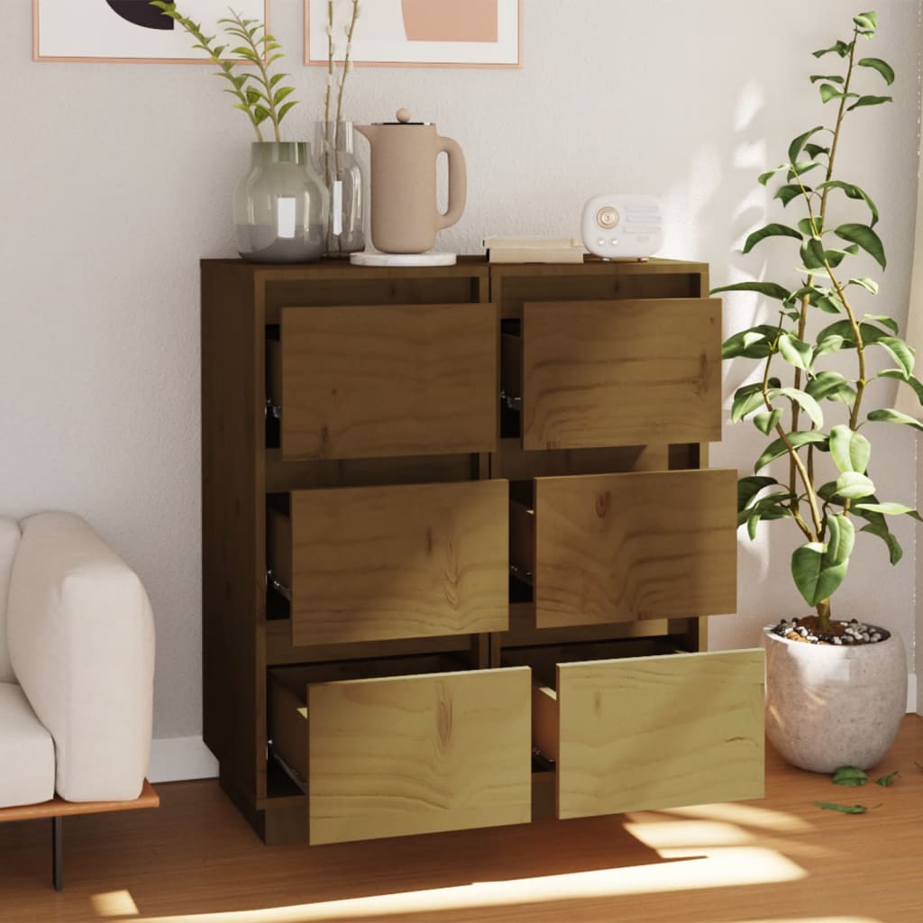 Sideboards 2 Stk. Honigbraun 31,5x34x75 cm Massivholz Kiefer
