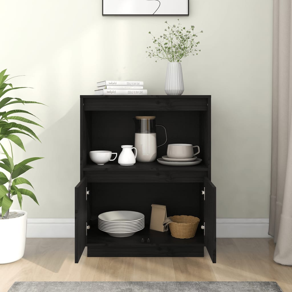 Sideboard Schwarz 70x35x80 cm Massivholz Kiefer