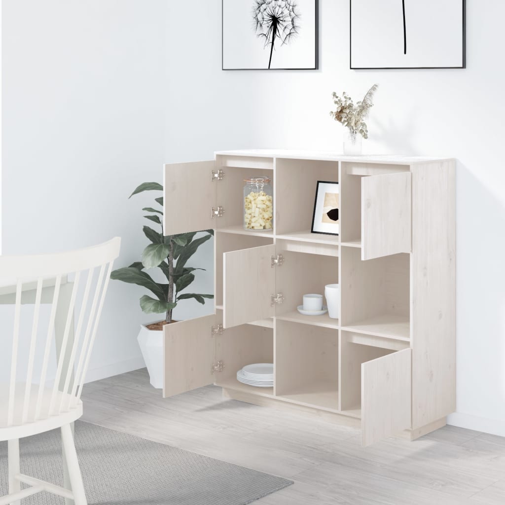 Highboard Weiss 110,5x35x117 cm Massivholz Kiefer