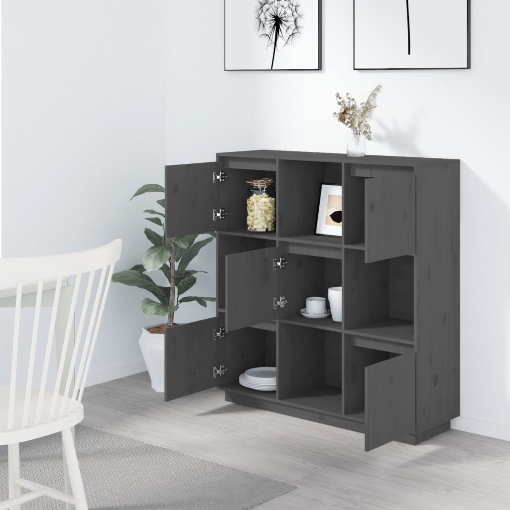 Highboard Grau 110,5x35x117 cm Massivholz Kiefer