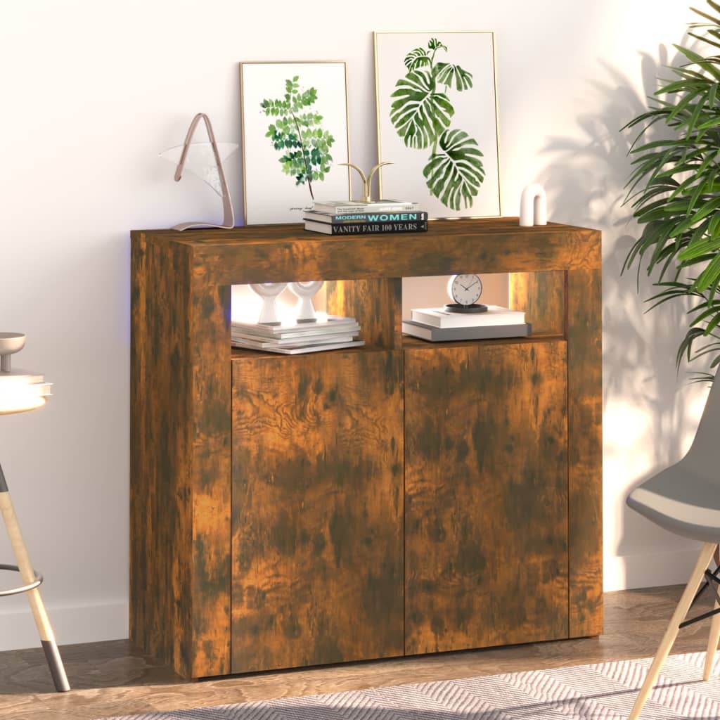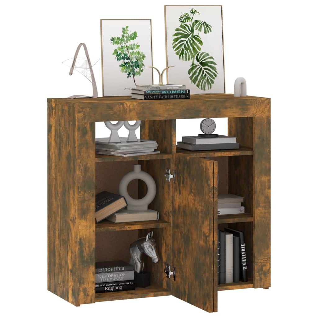 Sideboard mit LED-Beleuchtung Räuchereiche 80x35x75 cm