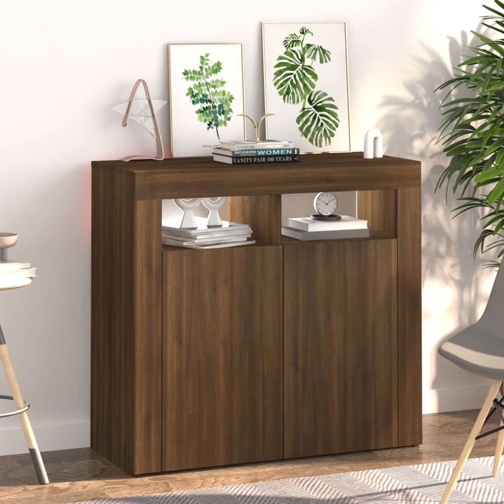 Sideboard mit LED-Beleuchtung Braun Eichen-Optik 80x35x75 cm