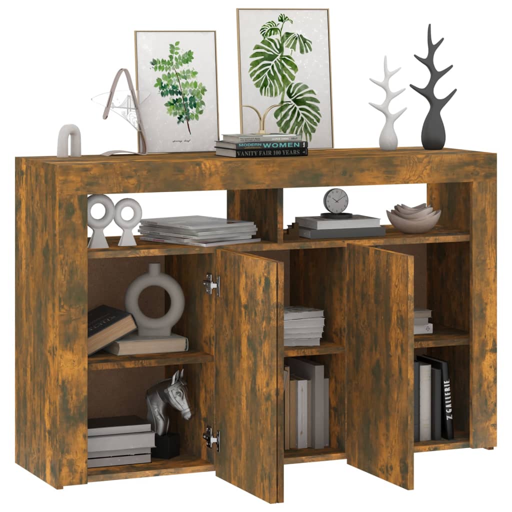 Sideboard mit LED-Beleuchtung Räuchereiche 115,5x30x75 cm