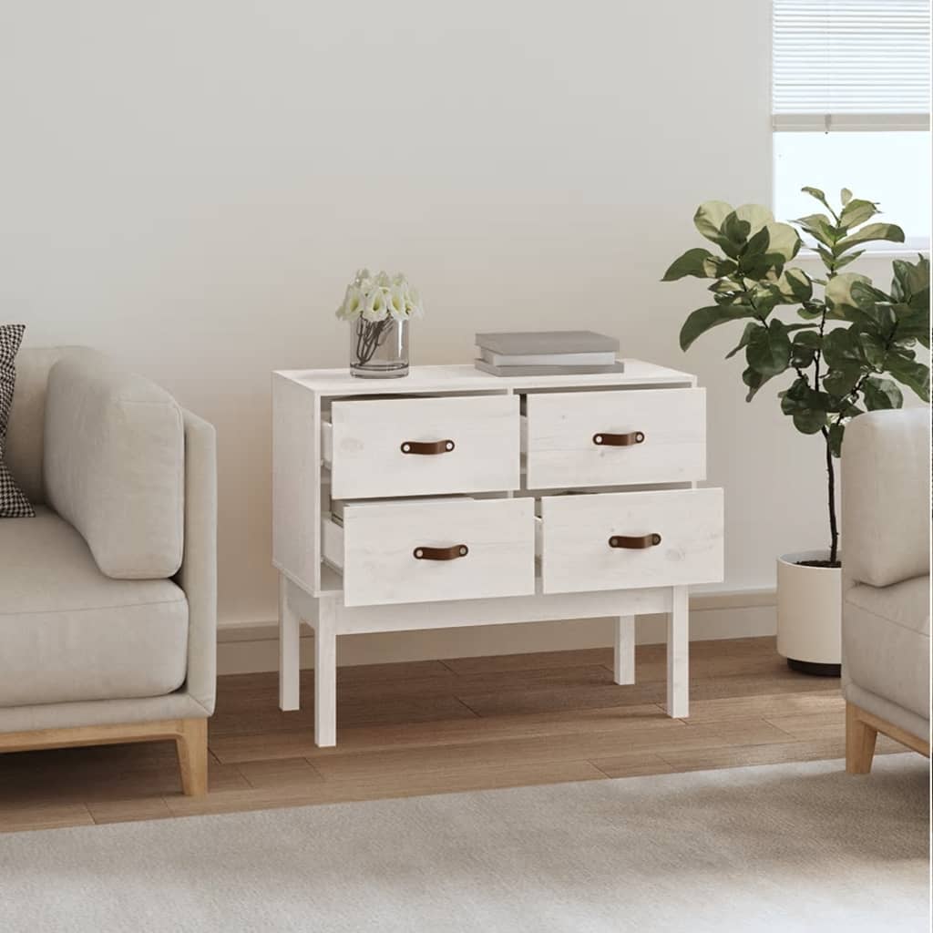 Beistellschrank Weiss 100x40x72 cm Massivholz Kiefer