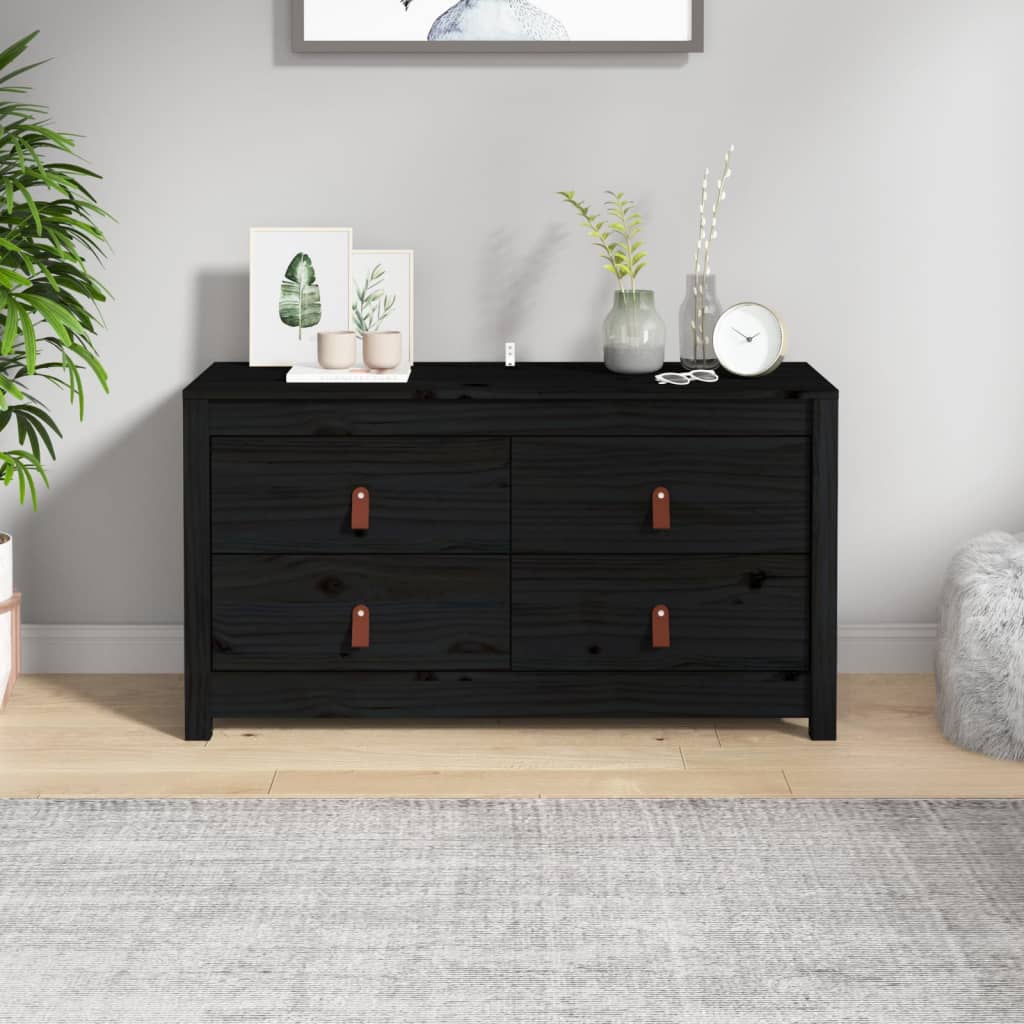 Sideboard Schwarz 83x41,5x100 cm Massivholz Kiefer