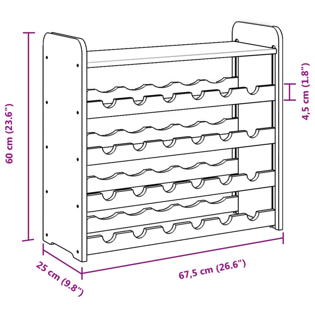 In diesem Weinregal aus Holz können Sie Ihre Weine stilvoll aufbewahren, altern lassen und zur Schau stellen! Massives Kiefernholz: Dieses Weinregal ist aus Kiefern-Massivholz gefertigt. Massives Kiefernholz ist ein wunderschönes Naturmaterial. Kiefernholz weist eine gerade Maserung auf und die Aststellen verleihen dem Holz seine charakteristische, rustikale Optik.Reichlich Stauraum: Das Weinregal besitzt 4 Ebenen, auf denen bis zu 24 Flaschen Wein Platz finden. Jede Ebene kann 6 Flaschen aufnehmen.Wellen-Design: Das Wellen-Design ermöglicht dem Korken feucht zu bleiben, was den Wein länger haltbar macht.Breite Anwendungen: Das Weinregal findet leicht Platz in der Küche, Speisekammer, einem Schrank, dem Esszimmer, Keller, auf der Arbeitsplatte, in der Bar usw. Achtung:Um ein Umkippen zu verhindern, muss dieses Produkt mit einer Wandhalterung (nicht im Lieferumfang enthalten) gesichert werden.