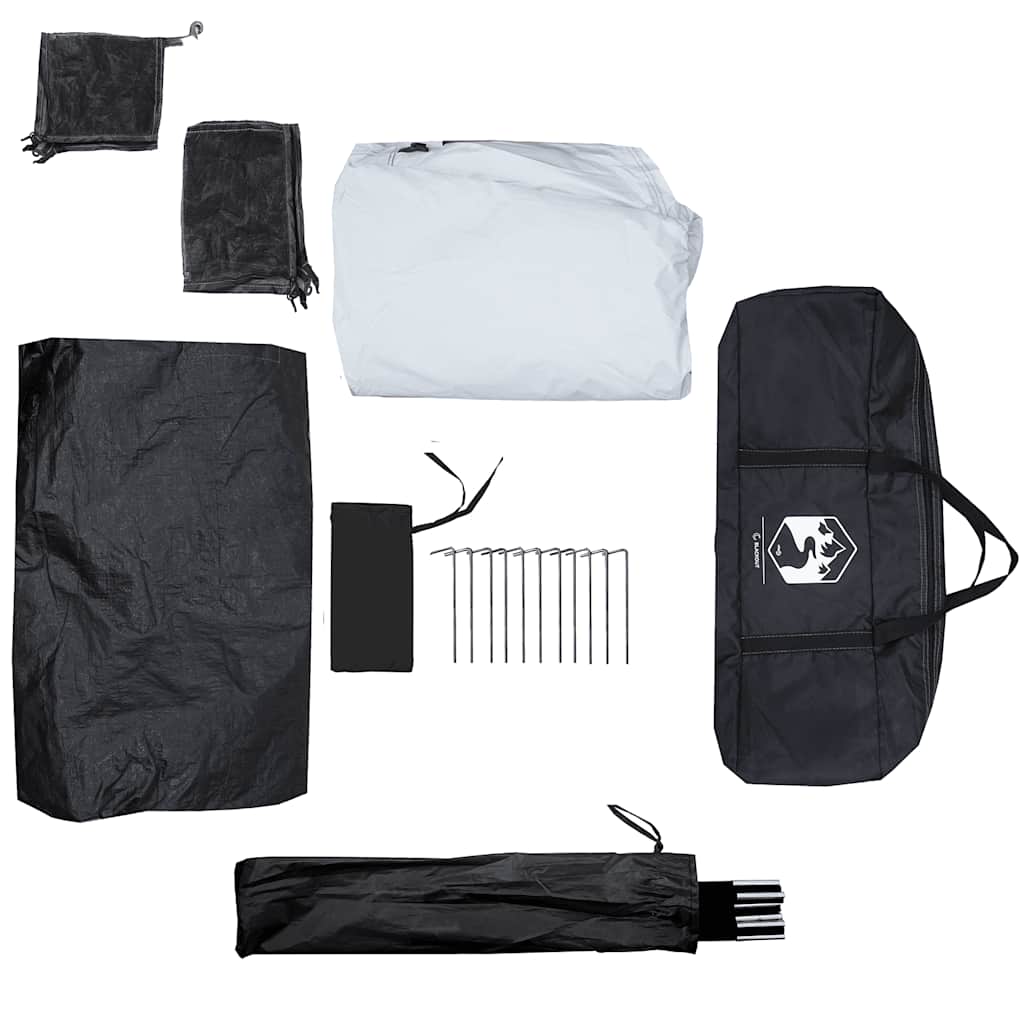 Dieses Campingzelt im modernen Look schützt vor unangenehmen Wetter und bietet einen komfortablen Ort bei Abenteuern. Rundum wasserdichtes Design: Aus Polyester mit PU-Beschichtung gefertigt, ist dieses Campingzelt wasser- und winddicht. Die versiegelten Nähte verhindern effektiv das Eindringen von Regenwasser, während die strapazierfähige Bodenplane für ein trockenes und komfortables Interieur sorgt.Weißer Verdunkelungsstoff: Die speziell entworfene Zeltplane hält 99 % des Tageslichtes ab und sorgt so für eine kühlere und bequemere Schlafumgebung. Verabschiede dich also von der Morgensonne und genieße einen erholsamen Schlaf.Abnehmbares Überzelt: Das abnehmbare Überzelt lässt sich an der Zeltoberseite befestigen, um Wetterschutz zu bieten und Privatsphäre zu schaffen.Praktischer Zugang zum Stromkabel: Dank des E-Anschlusses kannst du ganz einfach ein Verlängerungskabel von einer externen Stromquelle an dein Zelt anschließen.Gute Belüftung und Insektenschutz: Die Netzwände bieten nicht nur eine hervorragende Belüftung, sondern halten auch Insekten effektiv fern, um den Benutzern ein komfortables und insektenfreies Erlebnis zu bieten.Leicht und tragbar: Dank des faltbaren und leichten Designs lässt sich das Zelt einfach verpacken und in der mitgelieferten Tragetasche mühelos verstauen und transportieren. Achtung:Halte alle Flammen und Wärmequellen von diesem Zeltstoff fern.
