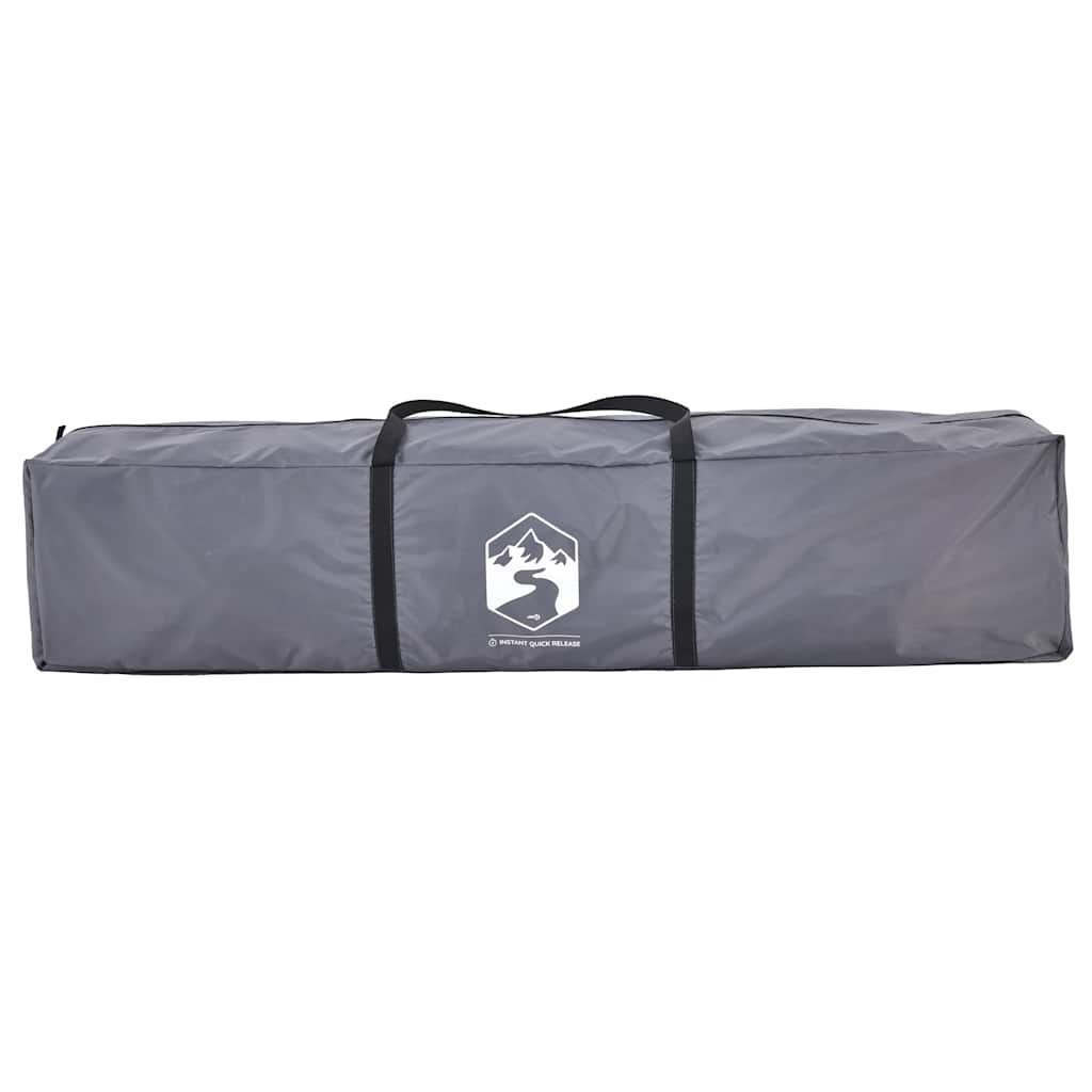 Dieses moderne Familienzelt schützt vor unangenehmen Wetter und bietet einen komfortablen Platz bei Abenteuern. Rundum wasserdichtes Design: Aus Polyester mit PU-Beschichtung gefertigt, ist dieses Campingzelt wasser- und winddicht. Die versiegelten Nähte verhindern effektiv das Eindringen von Regenwasser, während die strapazierfähige Bodenplane für ein trockenes und komfortables Interieur sorgt.Quick-Release-System: Dank des Quick-Release-Systems lässt sich das Zelt mühelos aufbauen! Lege das Zelt auf den Boden, ziehe das vormontierte Gestänge heraus, bis es einrastet, und schon ist das Zelt einsatzbereit!Abnehmbares Überzelt: Das abnehmbare Überzelt lässt sich an der Zeltoberseite befestigen, um Wetterschutz zu bieten und Privatsphäre zu schaffen.Praktischer Zugang zum Stromkabel: Dank des E-Anschlusses kannst du ganz einfach ein Verlängerungskabel von einer externen Stromquelle an dein Zelt anschließen.Leicht und tragbar: Dank des faltbaren und leichten Designs lässt sich das Zelt einfach verpacken und in der mitgelieferten Tragetasche mühelos verstauen und transportieren. Achtung:Halte alle Flammen und Wärmequellen von diesem Zeltstoff fern.
