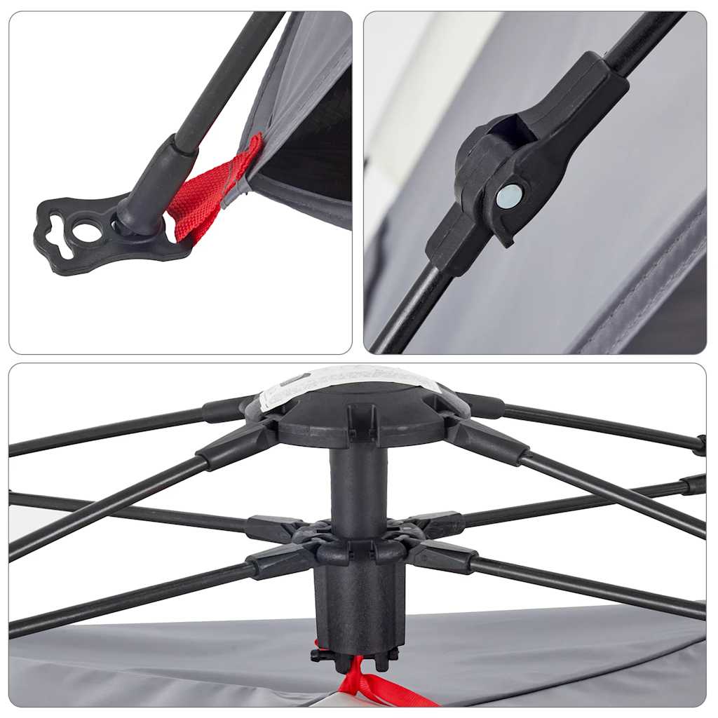Dieses Strandzelt bietet dir und deinen Freunden einen gemütlichen Unterschlupf im heißen Sommer. Das Zelt dient auch als Schattenspender über dem Sandkasten und dem Planschbecken. Wasserdicht: Aus Polyester mit PU-Beschichtung gefertigt, ist dieses Zelt wasser- und winddicht.Quick-Release-System: Dank des Quick-Release-Systems lässt sich das Zelt mühelos aufbauen! Lege das Zelt auf den Boden, ziehe das vormontierte Gestänge heraus, bis es einrastet, und schon ist das Zelt einsatzbereit!Doppelfenster: Das Netzfenster sorgt für eine gute Belüftung und hält Insekten fern, während das wasserdichte Fenster Schutz vor Wind und Regen bietet.Einfacher Zugang: Der Eingang mit Reißverschluss ermöglicht einen einfachen Zugang. Er lässt sich einfach aufrollen und mit Knebelknöpfen befestigen. So kannst du für eine gute Luftzirkulation und viel natürliches Licht im Zelt sorgen.Stabil und sicher: Befestige dein Zelt mit den mitgelieferten Heringen und Abspannseilen fest am Boden, um seine Stabilität und Sicherheit zu gewährleisten. Achtung:Halte alle Flammen und Wärmequellen von diesem Zeltstoff fern.