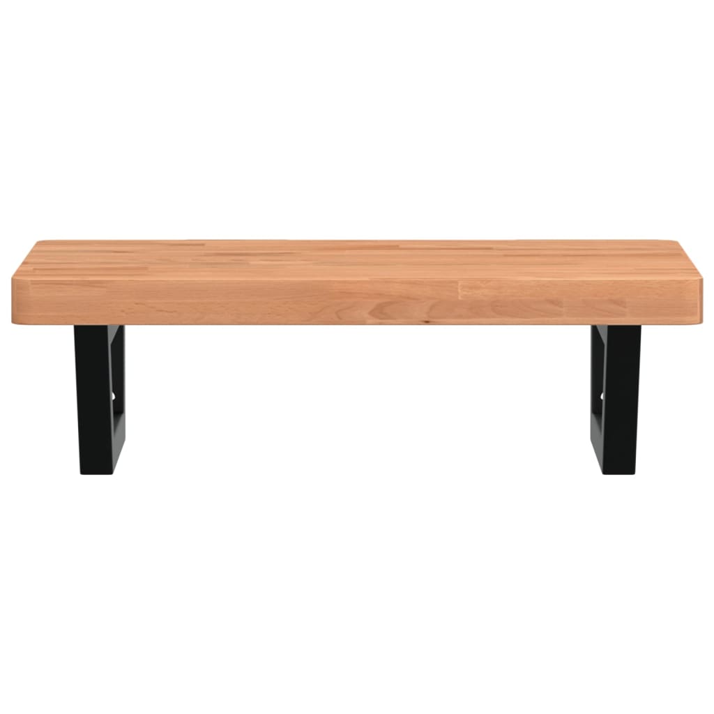 Die Waschtischplatte wird sicher an der Wand befestigt und bietet eine elegante und platzsparende Lösung für dein Badezimmer. Robust und langlebig: Dieses Waschbeckenregal besteht aus einem Stahlgestell und einer Oberplatte aus massivem Buchenholz, was es robust, stabil und langlebig macht. Platzsparend: Die schwebende Waschtischplatte bietet reichlich Platz für das Waschbecken, Seifen, Cremes sowie andere Kleinigkeiten. Dank der Trapezform kannst du Handtücher oder andere Dinge platzsparend an der Halterung aufhängen. Einfache Verwendung: Die Holzplatte ist nicht vorgebohrt, so dass dein Waschbecken je nach Bedarf links, rechts oder mittig installiert werden kann. Dank der vorgebohrten Löcher in der Halterung kann diese einfach mit der Tischplatte montiert und an der Wand befestigt werden. Vielseitige Anwendungsmöglichkeiten: Dank ihres modernen Designs fügt sie sich in verschiedene Arten von Bädern ein. Gut zu wissen:Die Schrauben sind nicht im Lieferumfang enthalten. Du kannst die Schrauben auf der Grundlage der unten aufgeführten Informationen separat erwerben. Wandbefestigung: 2 Stück M8-Dehnschrauben pro Halterung Holzplatte: 2 Stück M5x18-Schrauben (T=2) oder 2 Stück M5x20-Schrauben (T=2,5/4 cm) pro Halterung