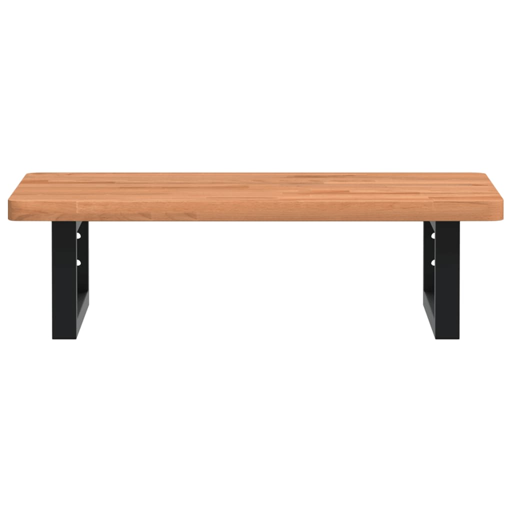 Die Waschtischplatte wird sicher an der Wand befestigt und bietet eine elegante und platzsparende Lösung für dein Badezimmer. Robust und langlebig: Dieses Waschbeckenregal besteht aus einem Stahlgestell und einer Oberplatte aus massivem Buchenholz, was es robust, stabil und langlebig macht. Platzsparend: Das Schweberegal bietet reichlich Platz für Cremes und verschiedene Kleinigkeiten. Dank der rechteckigen Form der Halterungen kannst du auch Handtücher oder andere Sachen darauf aufhängen. Einfache Verwendung: Die Holzplatte ist nicht vorgebohrt, so dass dein Waschbecken je nach Bedarf links, rechts oder mittig installiert werden kann. Dank der vorgebohrten Löcher in der Halterung kann diese einfach mit der Tischplatte montiert und an der Wand befestigt werden. Vielseitige Anwendungsmöglichkeiten: Dank ihres modernen Designs fügt sie sich in verschiedene Arten von Bädern ein. Gut zu wissen:Die Schrauben sind nicht im Lieferumfang enthalten. Du kannst die Schrauben auf der Grundlage der unten aufgeführten Informationen separat erwerben. Wandbefestigung: 2 Stück M8-Dehnschrauben pro Halterung Holzplatte: 2 Stück M5x18-Schrauben (T=2) oder 2 Stück M5x20-Schrauben (T=2,5/4 cm) pro Halterung