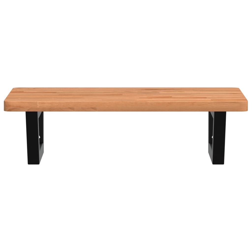 Die Waschtischplatte wird sicher an der Wand befestigt und bietet eine elegante und platzsparende Lösung für dein Badezimmer. Robust und langlebig: Dieses Waschbeckenregal besteht aus einem Stahlgestell und einer Oberplatte aus massivem Buchenholz, was es robust, stabil und langlebig macht. Platzsparend: Die schwebende Waschtischplatte bietet reichlich Platz für das Waschbecken, Seifen, Cremes sowie andere Kleinigkeiten. Dank der Trapezform kannst du Handtücher oder andere Dinge platzsparend an der Halterung aufhängen. Einfache Verwendung: Die Holzplatte ist nicht vorgebohrt, so dass dein Waschbecken je nach Bedarf links, rechts oder mittig installiert werden kann. Dank der vorgebohrten Löcher in der Halterung kann diese einfach mit der Tischplatte montiert und an der Wand befestigt werden. Vielseitige Anwendungsmöglichkeiten: Dank ihres modernen Designs fügt sie sich in verschiedene Arten von Bädern ein. Gut zu wissen:Die Schrauben sind nicht im Lieferumfang enthalten. Du kannst die Schrauben auf der Grundlage der unten aufgeführten Informationen separat erwerben. Wandbefestigung: 2 Stück M8-Dehnschrauben pro Halterung Holzplatte: 2 Stück M5x18-Schrauben (T=2) oder 2 Stück M5x20-Schrauben (T=2,5/4 cm) pro Halterung