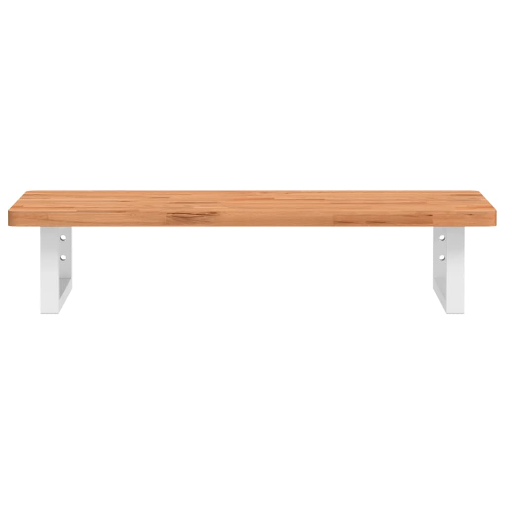Die Waschtischplatte wird sicher an der Wand befestigt und bietet eine elegante und platzsparende Lösung für dein Badezimmer. Robust und langlebig: Dieses Waschbeckenregal besteht aus einem Stahlgestell und einer Oberplatte aus massivem Buchenholz, was es robust, stabil und langlebig macht. Platzsparend: Das Schweberegal bietet reichlich Platz für Cremes und verschiedene Kleinigkeiten. Dank der rechteckigen Form der Halterungen kannst du auch Handtücher oder andere Sachen darauf aufhängen. Einfache Verwendung: Die Holzplatte ist nicht vorgebohrt, so dass dein Waschbecken je nach Bedarf links, rechts oder mittig installiert werden kann. Dank der vorgebohrten Löcher in der Halterung kann diese einfach mit der Tischplatte montiert und an der Wand befestigt werden. Vielseitige Anwendungsmöglichkeiten: Dank ihres modernen Designs fügt sie sich in verschiedene Arten von Bädern ein. Gut zu wissen:Die Schrauben sind nicht im Lieferumfang enthalten. Du kannst die Schrauben auf der Grundlage der unten aufgeführten Informationen separat erwerben. Wandbefestigung: 2 Stück M8-Dehnschrauben pro Halterung Holzplatte: 2 Stück M5x18-Schrauben (T=2) oder 2 Stück M5x20-Schrauben (T=2,5/4 cm) pro Halterung