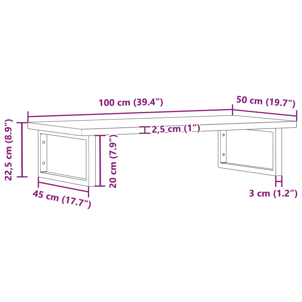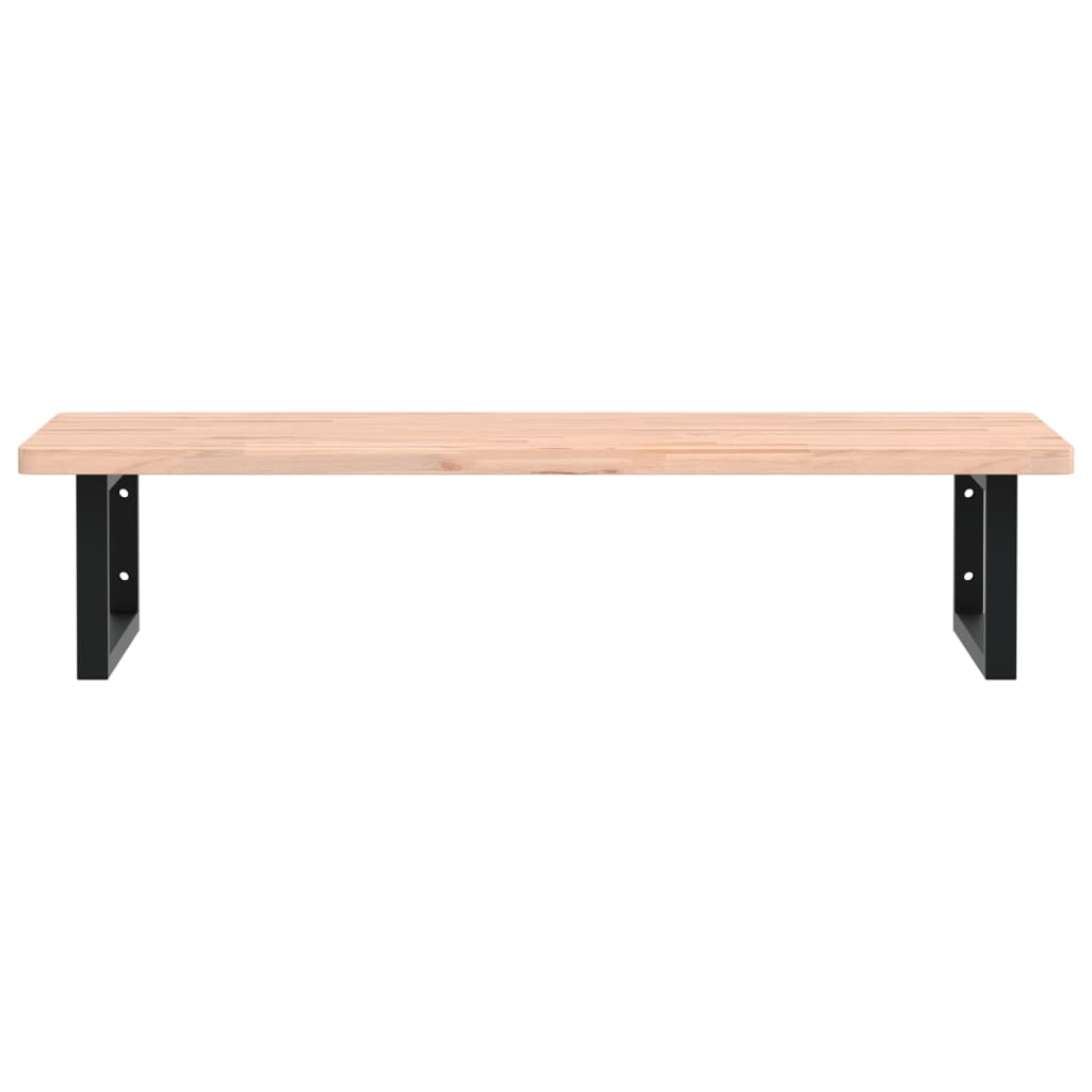 Die Waschtischplatte wird sicher an der Wand befestigt und bietet eine elegante und platzsparende Lösung für dein Badezimmer. Robust und langlebig: Dieses Waschbeckenregal besteht aus einem Stahlgestell und einer Oberplatte aus massivem Buchenholz, was es robust, stabil und langlebig macht. Platzsparend: Das Schweberegal bietet reichlich Platz für Cremes und verschiedene Kleinigkeiten. Dank der rechteckigen Form der Halterungen kannst du auch Handtücher oder andere Sachen darauf aufhängen. Einfache Verwendung: Die Holzplatte ist nicht vorgebohrt, so dass dein Waschbecken je nach Bedarf links, rechts oder mittig installiert werden kann. Dank der vorgebohrten Löcher in der Halterung kann diese einfach mit der Tischplatte montiert und an der Wand befestigt werden. Vielseitige Anwendungsmöglichkeiten: Dank ihres modernen Designs fügt sie sich in verschiedene Arten von Bädern ein. Gut zu wissen:Die Schrauben sind nicht im Lieferumfang enthalten. Du kannst die Schrauben auf der Grundlage der unten aufgeführten Informationen separat erwerben. Wandbefestigung: 2 Stück M8-Dehnschrauben pro Halterung Holzplatte: 2 Stück M5x18-Schrauben (T=2) oder 2 Stück M5x20-Schrauben (T=2,5/4 cm) pro Halterung